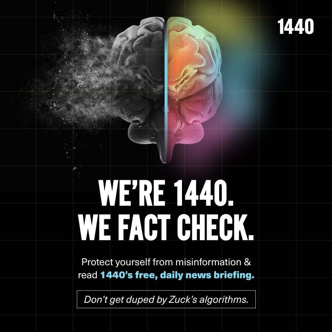 Join over 4 million Americans who start their day with 1440 – your daily digest for unbiased, fact-centric news. From politics to sports, we cover it all by analyzing over 100 sources. Our concise, 5-minute read lands in your inbox each morning at no cost. Experience news without the noise; let 1440 help you make up your own mind. Sign up now and invite your friends and family to be part of the informed.