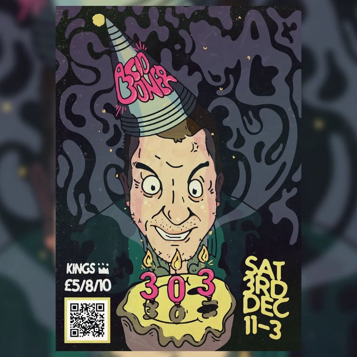 Spinning a strictly all-vinyl selection of Disco Italo, Chicago House, Electro, Hi-NRG, Techno, IDM, Old-School Jungle & everything Acid, together with his hardware set-up for some Live Acid, to work you into that sweaty "taps aff" ecstasy-fuelled rave frenzy that is now synonymous with the name Acid Boner.