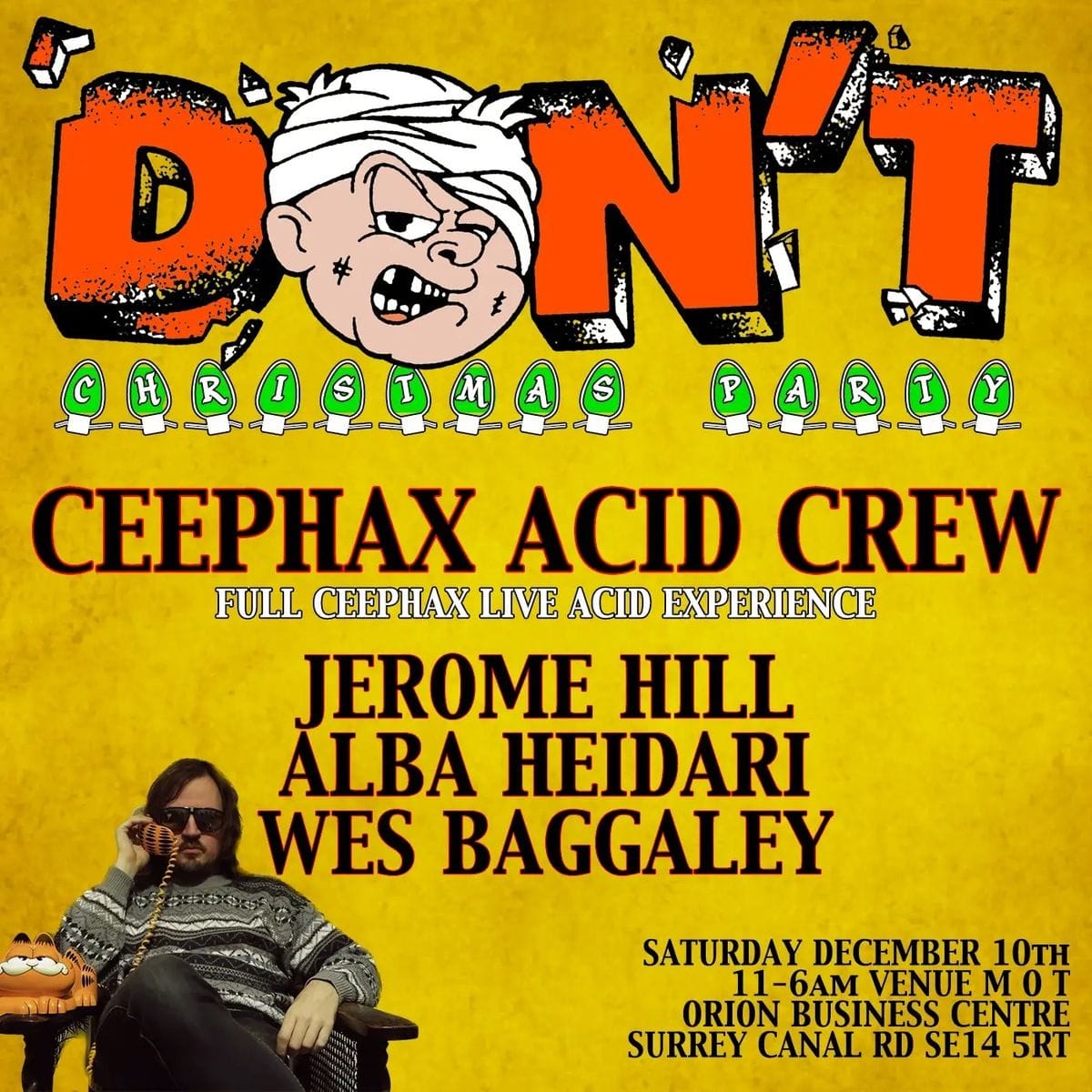 Venue MOT in South Bermondsey is the place to be for Acid Techno lovers on Saturday 10th December, where Jerome Hill's Don't will be holding their 2022 Christmas party. With Ceephax Acid Crew headlining with a full live show and support from Jerome Hill, Alba Heidari and Wes Baggaley, this is one not to be missed.